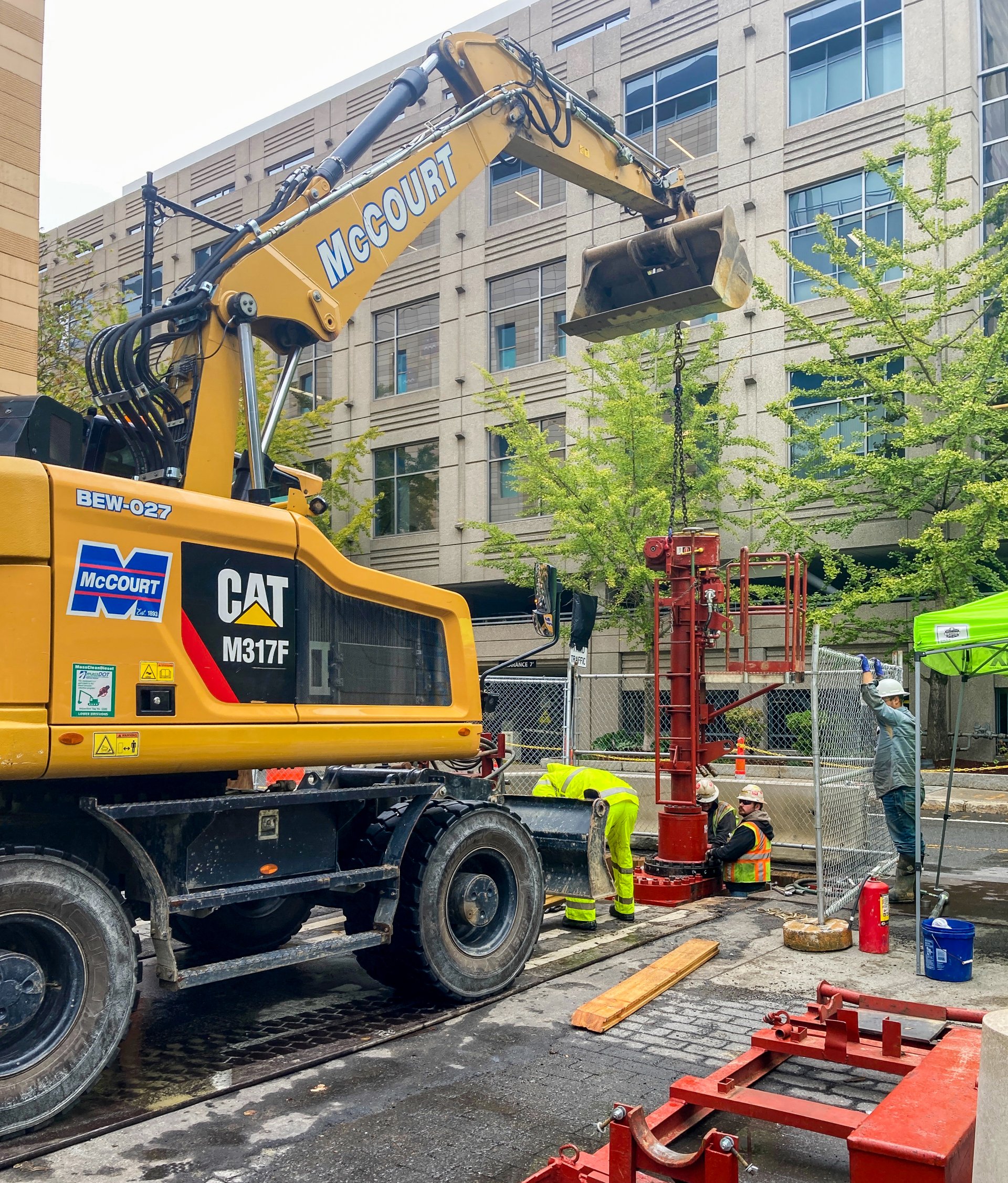 This project relocated Eversource’s existing Kendall Square gas transfer station to a new location within the limits of Vicinity’s Kendall Power Plant in Cambridge, MA. As part of this project, McCourt constructed BIOMED’s proposed three-tiered lab tower, with the first floor dedicated to the Arts. It was awarded the relocation of just under one mile of various sizes of natural gas mains throughout the streets in the Kendall Square area. On Binney Street, two custom “slam shut vaults” with newly designed control cabinets, two pressure monitoring vaults, several anode 200 ft deep wells, and fourteen live gas tie-ins, one tie into an existing 36” cast iron main utilizing a line stop tool; the first use in the USA. The site contained varying levels of contamination that had to be carefully segregated and disposed of as the project progressed. The field team coordinated with various owners and other contractors to overcome the project challenges and extremely tight schedules. This award was McCourt’s first natural gas Project.